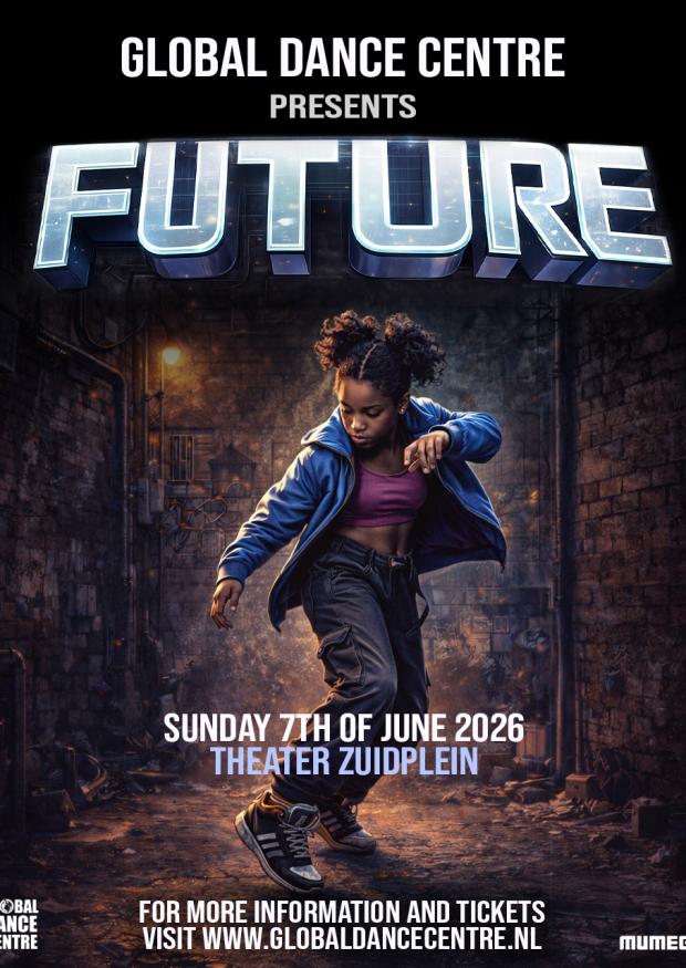 Op zondag 7 juni 2026 vindt de eindshow van Global Dance Centre ROTTERDAM “FUTURE” plaats. Het belooft een adembenemende show te worden waarin dans, muziek en dromen samenkomen. De show vindt plaats in Theater Zuidplein ROTTERDAM.