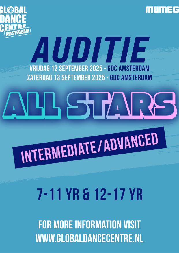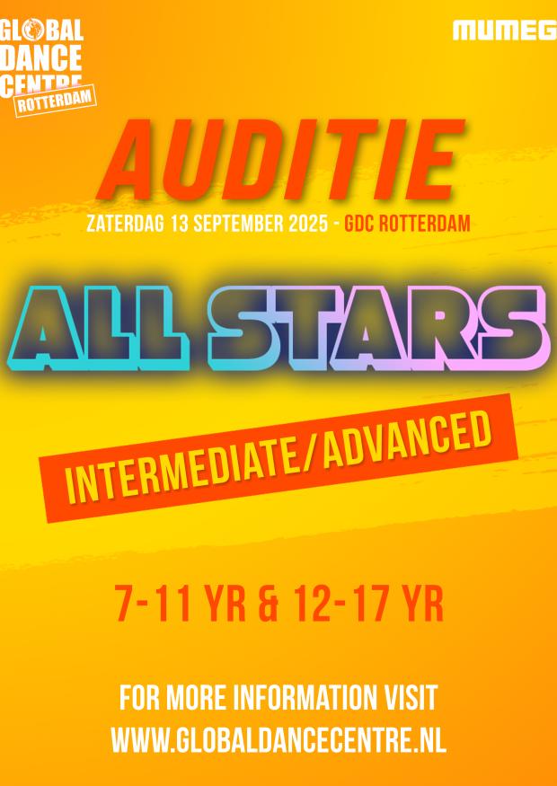 Antwoord: Wil je je kansen vergroten om toegelaten te worden tot All Stars? Dan kan je reguliere lessen volgen bij Global Dance Centre om verder trainen. Klik hier voor het rooster.